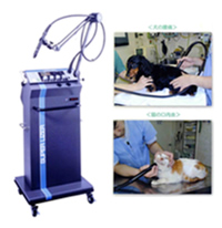 手術の時には、患者さんの状態が一目で分かります。麻酔時の動物の様子をこの装置で観察します。心拍、血圧、麻酔濃度、体温、血中酸素飽和度などの多項目がモニタリングできます。