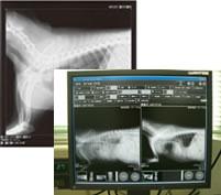 従来のレントゲンフィルムをデジタルシステムにしたもので、現像の手間がなくなり、時間の短縮ができるだけでなく、より鮮明な画像によって診断能力が向上することが期待できます。また、より少ないレントゲン線量で撮影できるため、動物の負担も少なくなります。