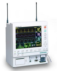 麻酔や緊急管理の時に、心拍数、呼吸数、体温、血圧、動脈血酸素飽和度、呼吸様式、呼気中二酸化炭素濃度などを監視する装置です。
